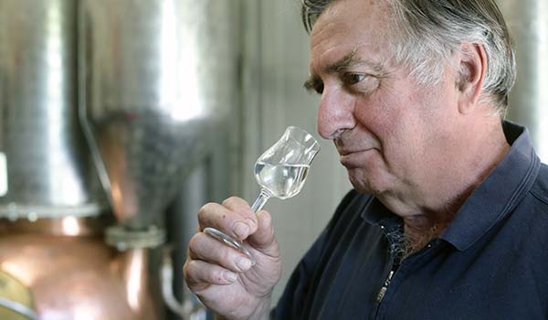 Gerhard Rückert an der Brennblase verfeinert dieses Getränk liebevoll